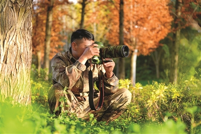摄影爱好者在威宁草海北坡生态公园内拍摄美景。