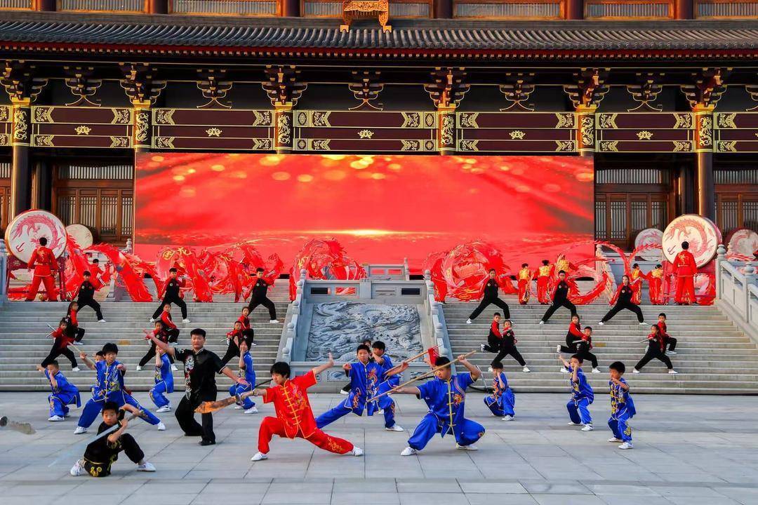 大成殿广场上,旌旗环绕,队列整齐,擂鼓轰鸣。大会在刚劲威猛、气势如虹的《八极震云天》表演节目中拉开帷幕,不同年龄段的八极拳习练者登台展示精湛技艺,一招一式尽显扎实功底,大有“晃膀撞天倒,跺脚震九州”之雄风。现场观众沉浸于独特的武术魅力之中,也近距离领略到八极拳的深厚底蕴。